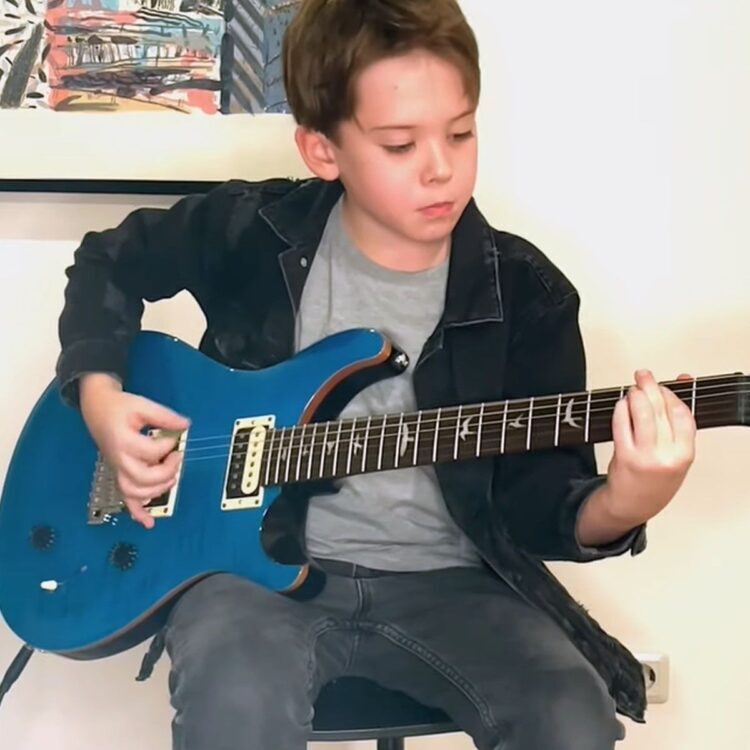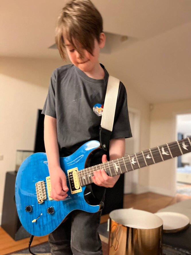10-летний Платон показал мастер-класс на электрогитаре, играет, Kak профессионал.