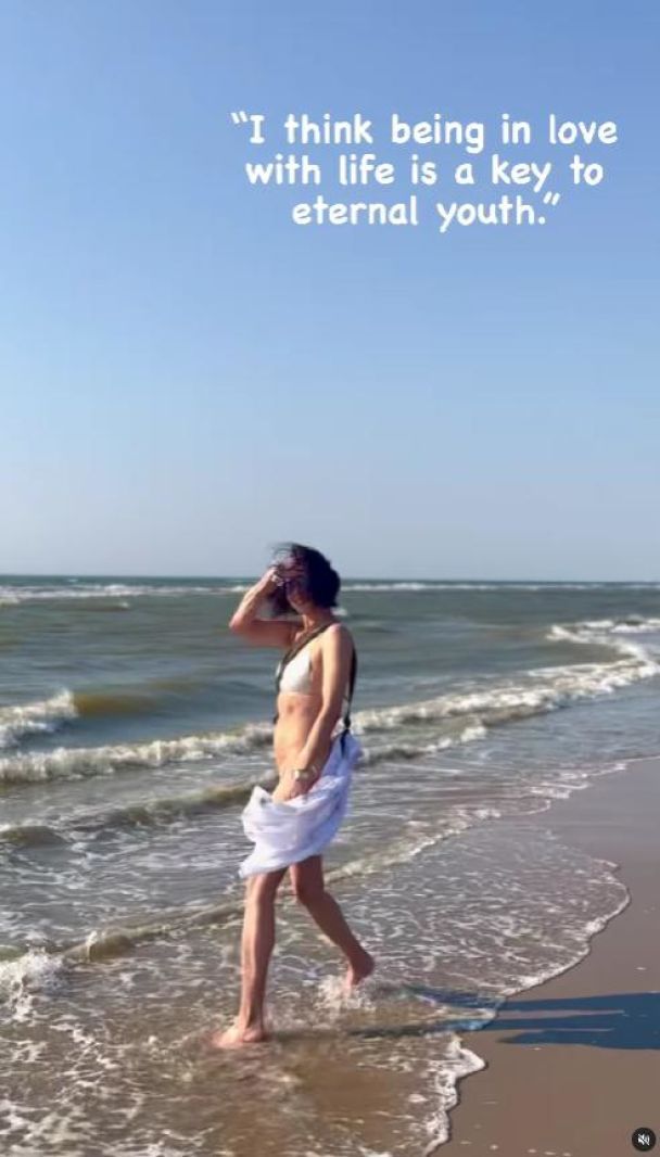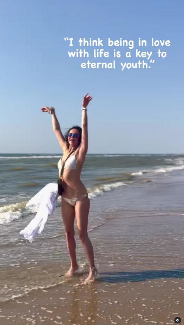 На днях страничка женщины пополнилась новыми кадрами с отдыха, на которых счастливая и улыбчивая красавица продемонстрировала свои кубики на животе и талию как у студентки.