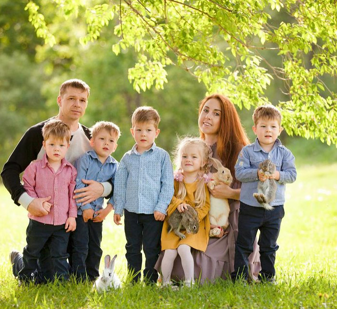 Большое семейство живет в доме, который им достался от бабушки. Несмотря на все сложности, чувства пары стали только сильнее. Муж во всем поддерживает супругу — нянчится с детьми, играет им на гитаре и кормит.