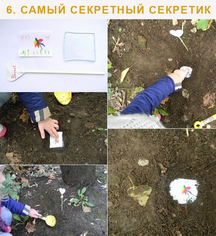 Помню, откопаешь ямку, разложишь на дне фантики, цветные камушки или еще что…, накроешь стеклышком и сверху насыпиш земли. Потом разгребешь землю, а там секретик.