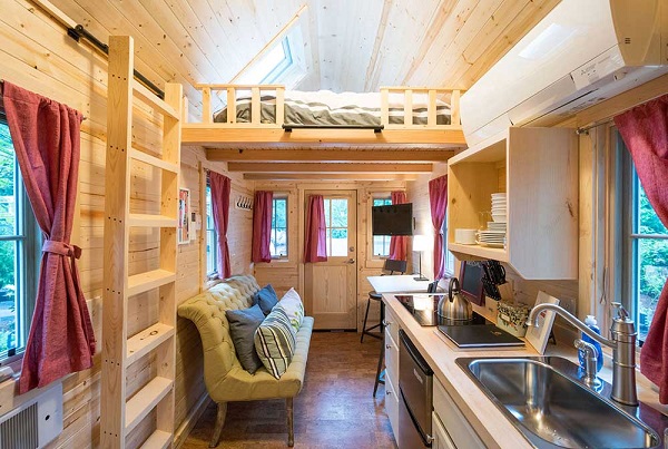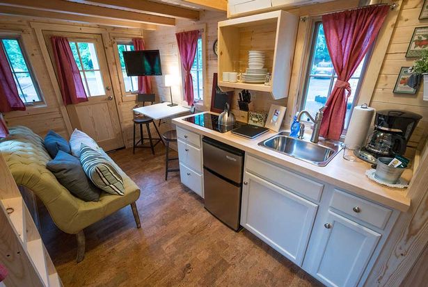 В ее уютном домике есть все, что нужно для нормальной жизни: небольшая кухня с плитой и мойкой, удобный диванчик, ванная комната с душем, раковиной и туалетом и спальня.
