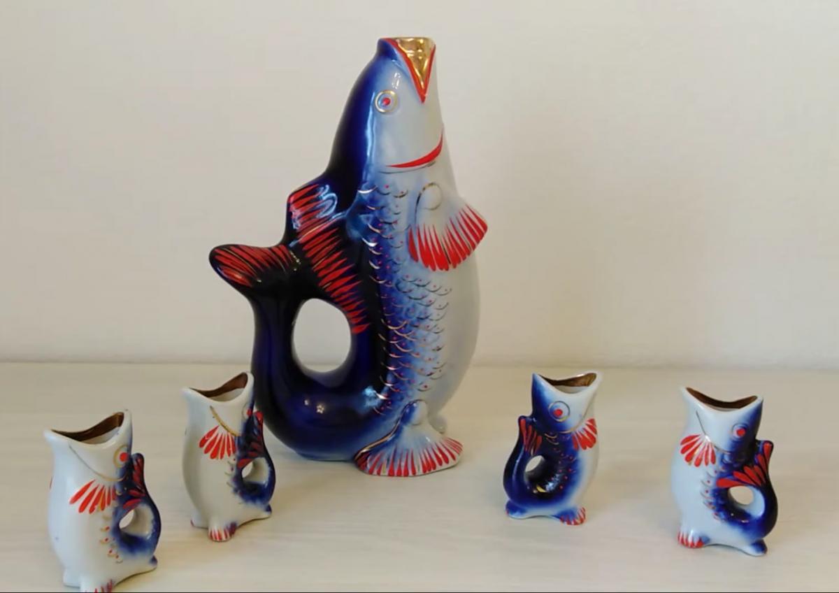 Коротко говоря, сервиз «Рыбка» — это графин со стопками, который положено использовать на застолье. Впрочем, люди, которые пили из этих рюмок, отмечают, что сервиз очень непрактичный в использовании — с него выливается вся жидкость. Поэтому чаще «Рыбки» служили необычными статуэтками.