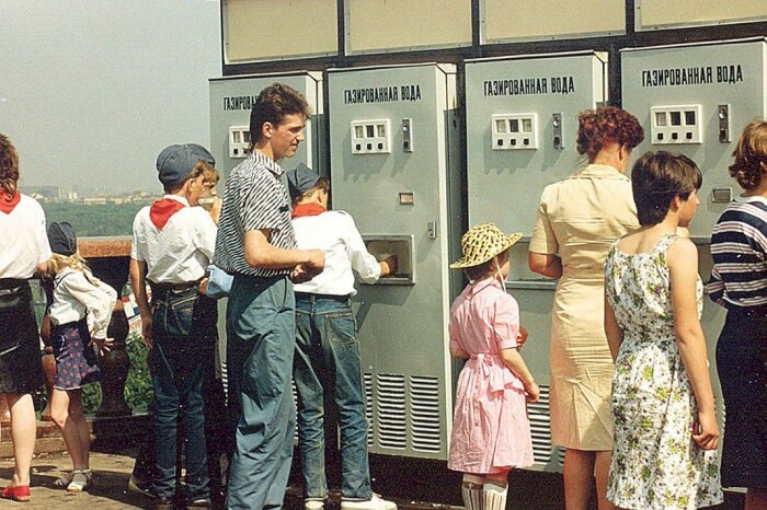 - Стакан газировки из автомата, с сиропом (сладкая, вкусная вода, какой сейчас не найти).