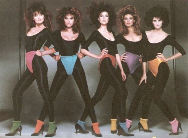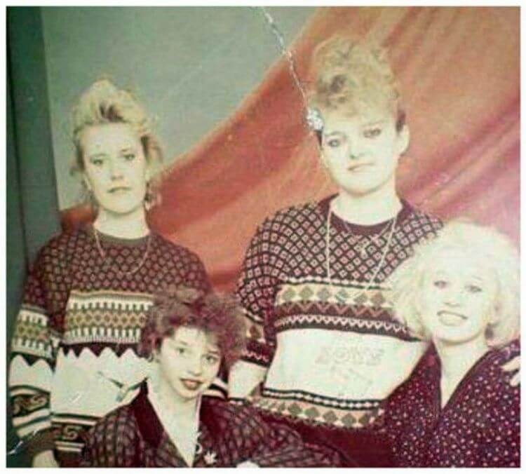 В целом то, что надевали на себя модницы тех лет нельзя даже отнести к чему то, что связано со стилем. Фиолетовые лосины, свитера с непонятным принтом, мастерки. А что уж говорить о начесах на головах и синих тенях!