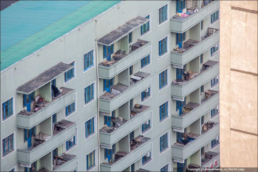 И ты видишь лишь балконы и мутные стекла окон многочисленных высоток Пхеньяна или стареньких, порой покосившихся, панельных «хрущёвок» провинции.