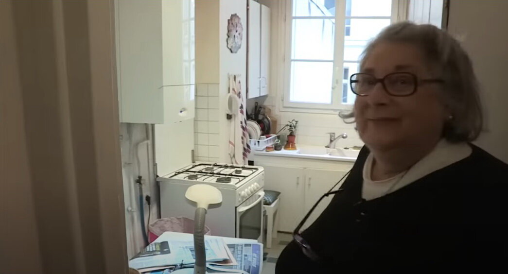 Однако за изысканным фасадом дома скрывается обычная квартира с устаревшей отделкой. Мари Лавье извиняется за небольшой беспорядок. Пенсионерка привыкла жить одиноко, и кроме работников социальной службы к ней уже давно никто не ходит.