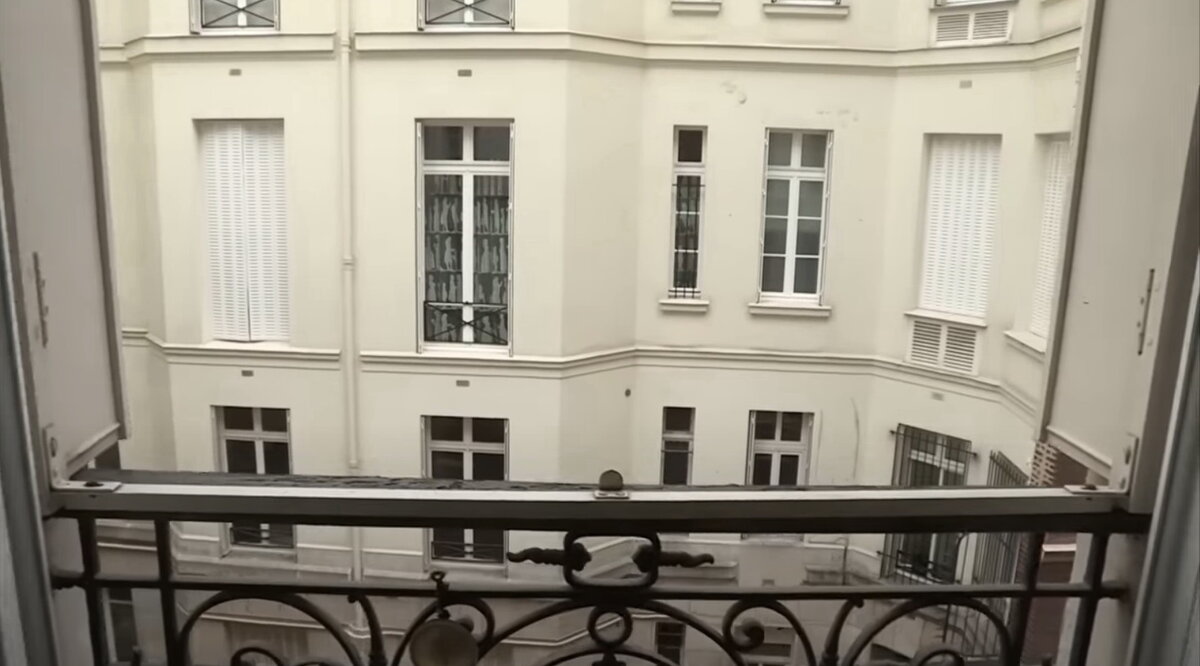 Окна квартиры Мари Лавье выходят во внутренний двор, и хотя снаружи виден типичный кованый Парижский балкончик, этот вид очень сильно напоминает знаменитые дворы-колодцы Санкт-Петербурга.