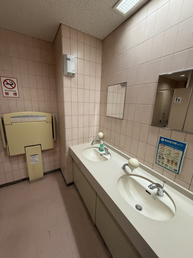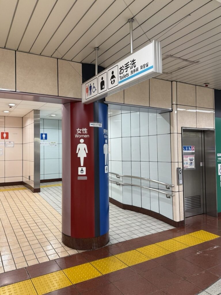 Сначала покажу вам, как выглядят самые обычные туалеты на станциях метро. Они есть на каждой станции. Всегда будут крупные указатели, чтобы люди могли легко их найти, а еще в 90% случаях будет большое зеркало перед входом.