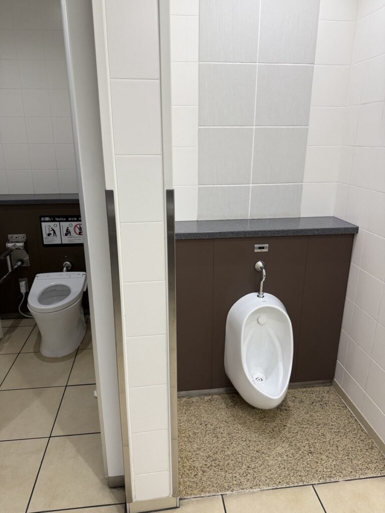 Всегда есть специальное кресло для ребенка, чтобы он не нервничал, пока вы делаете свои дела. Ну и в женском туалете есть унитаз для мальчиков, чтобы он мог зайти с мамой.