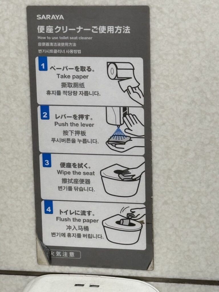 Удивляясь этим необычным и непривычным для меня вещам, я не заметила одну важную надпись, которая больше всего меня поразила: инструкция, как убирать туалет до и после своего посещения.