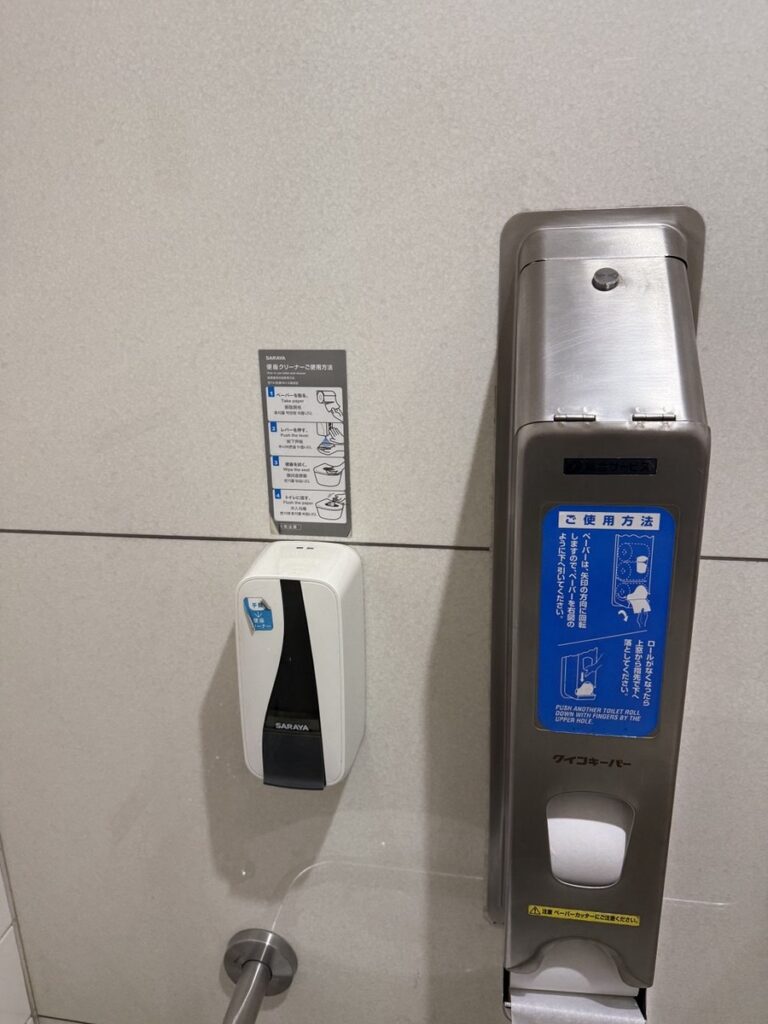Обязательно мыло, антисептик и бумага. Мусорок не будет, так как в Японии его сортируют. Туалетная бумага очень тонкая, почти прозрачная, чтобы легко растворялась и разлагалась в воде.