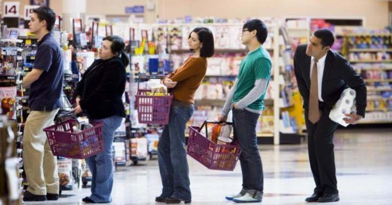 Разумеется, в это время в супермаркете много людей, ведь все они тоже идут после работы и по пути домой покупают необходимое. Поэтому на кассу вечером всегда большие очереди.