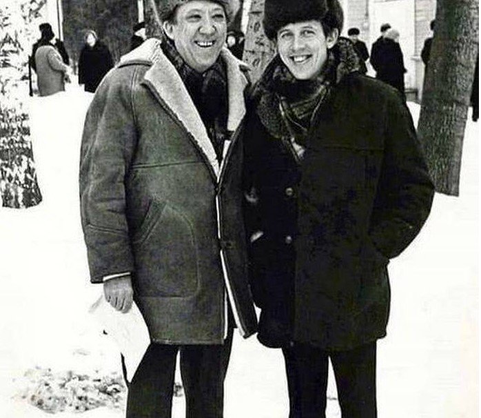 А с этой фотографии нам улыбаются молодые Никулин и Золотухин.