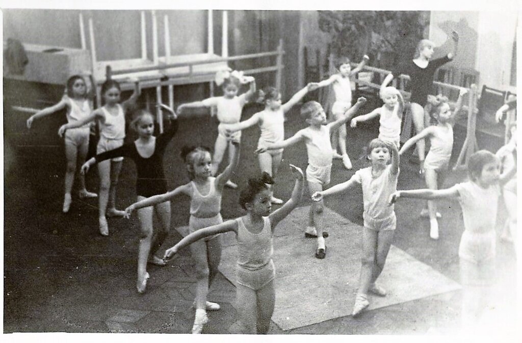 Юные танцовщики и танцовщицы во время занятий. Снимок сделан 10 января 1972 года в ДК Судоверфи города Городец.