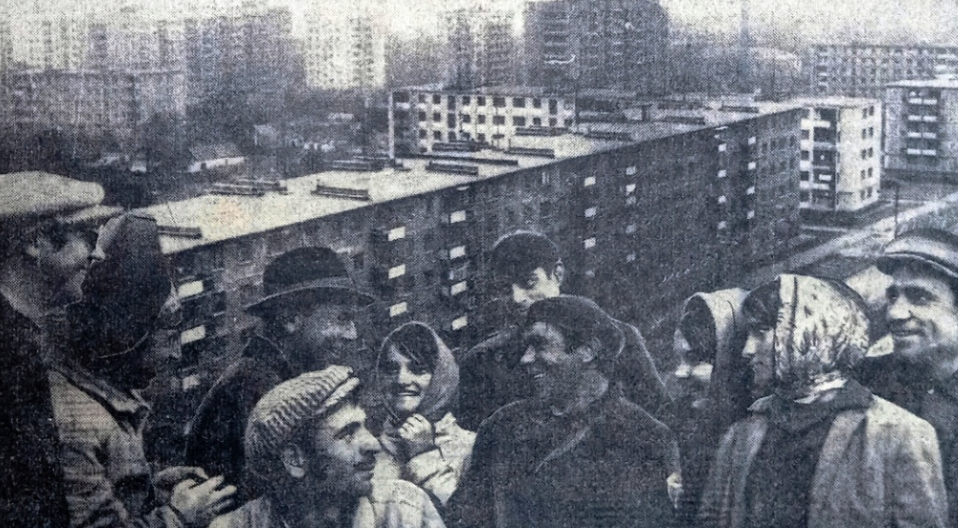 Строительный трест №17 на фоне сданных им домов в январе 1972 года (Днепропетровск). Это скан из газеты, поэтому качество снимка оставляет желать лучшего.