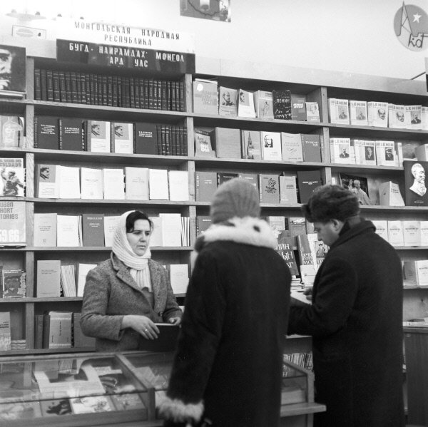 Смотрите, какой интересный магазин в Москве. На этом снимке 50-летней давности — книжный магазин «Дружба», отдел монгольской литературы.