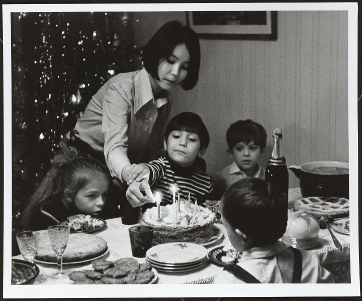 Вот, например, снимок от 15 января 1972 года. Свечи на праздничном тортике зажигает актриса Наталья Аринбасарова. А за руку ее хватает юный именинник – Егор Кончаловский, тогда ему было всего 7 лет.