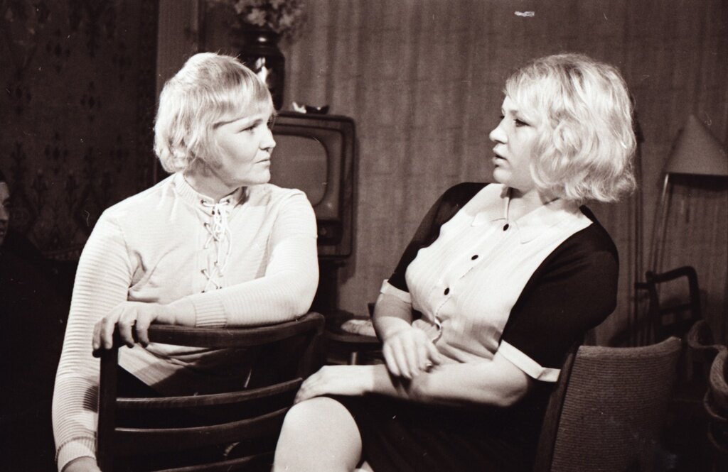 Поэтесса Ираида Акиндиновна Потехина (справа) с подругой у себя дома. Обстановка в ее квартире мне понравилась — интересная, благородная.