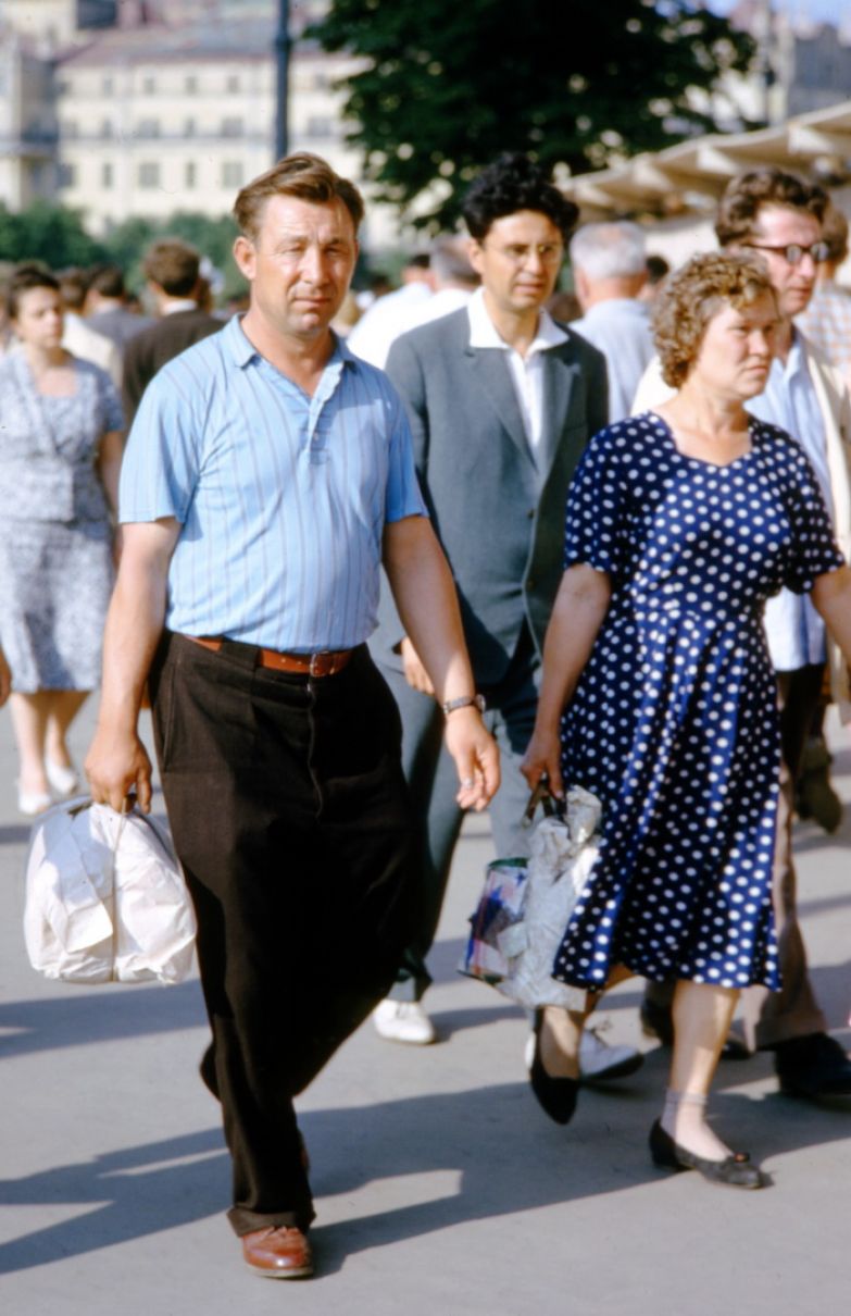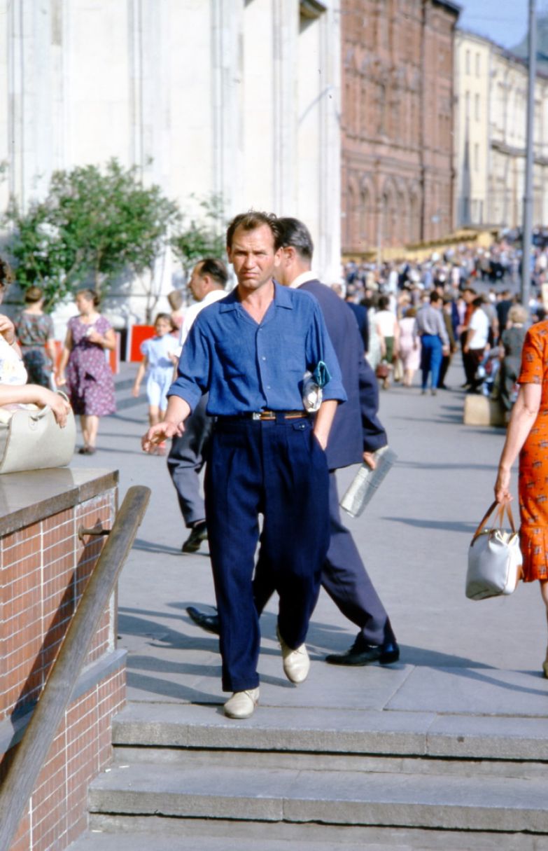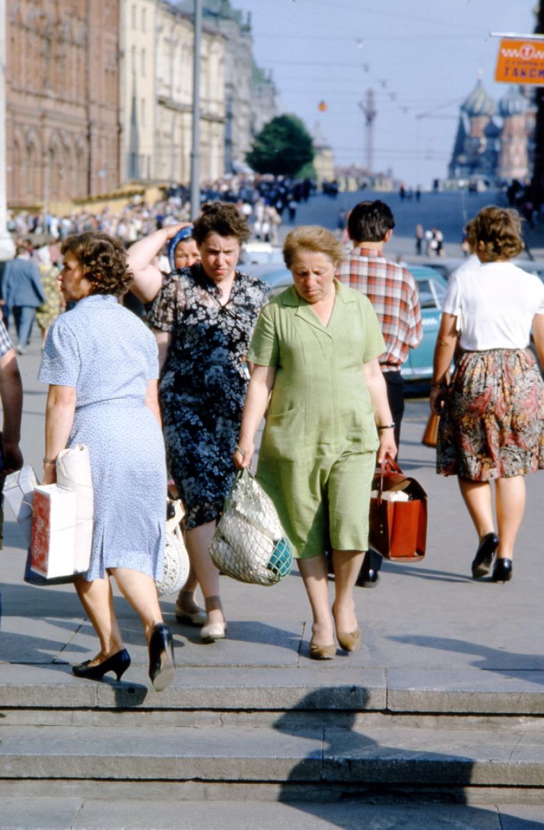 Метод Хаммонда был прост и гениален: он делал много-много снимков с одной точки, снимая всех, идущих мимо или навстречу. Иногда это похоже на кадры из кинофильма. Интересно, что ему, кажется, никто не препятствовал (все-таки иностранец, бесцеремонно фотографирующий советских граждан, подозрителен), но год был шестьдесят четвертый, а не, скажем, пятьдесят третий.