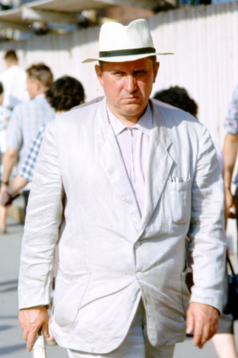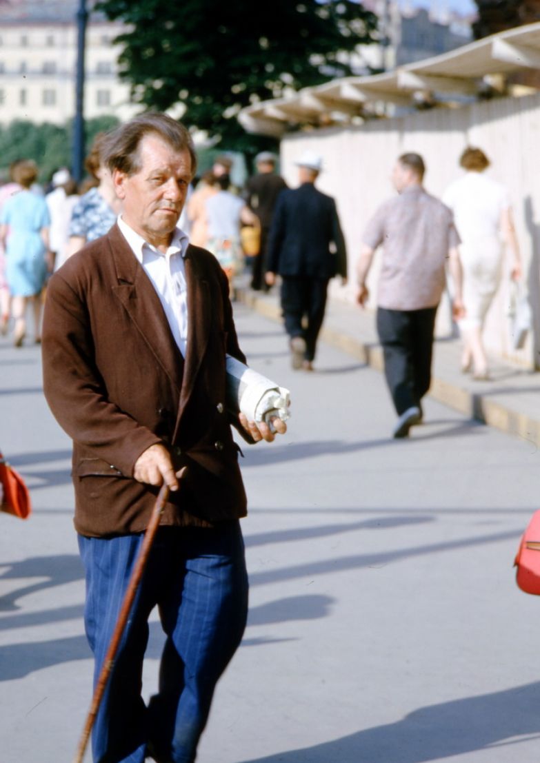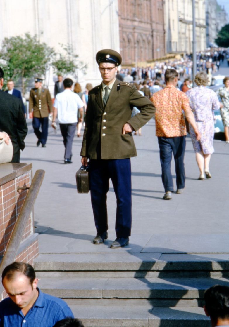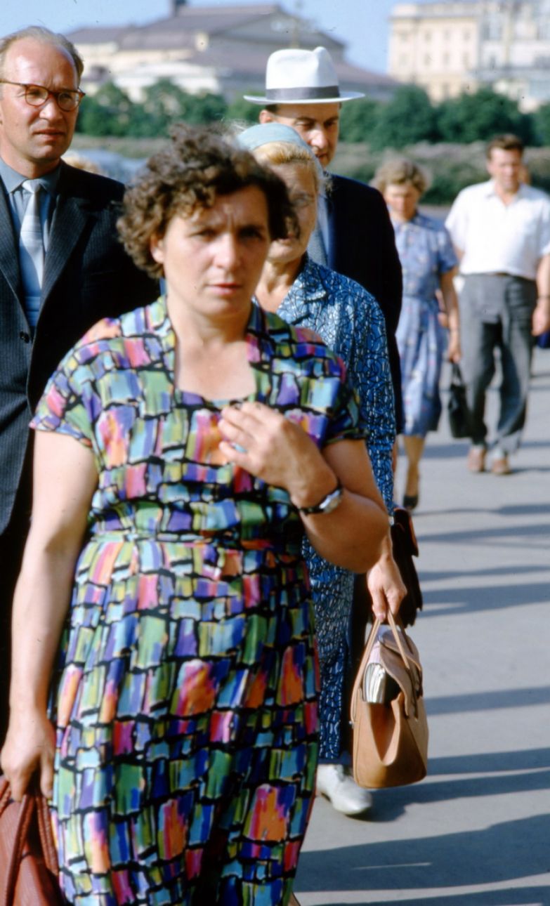 Метод Хаммонда был прост и гениален: он делал много-много снимков с одной точки, снимая всех, идущих мимо или навстречу. Иногда это похоже на кадры из кинофильма. Интересно, что ему, кажется, никто не препятствовал (все-таки иностранец, бесцеремонно фотографирующий советских граждан, подозрителен), но год был шестьдесят четвертый, а не, скажем, пятьдесят третий.
