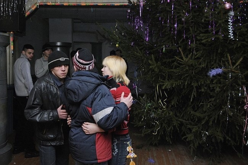Верхнюю одежду брутальные парни не снимали, как и шапки. При чем не по причине отсутствия отопления, а потому что так казалось круче. Девушки старались все-таки раздеться и показать платьица, кофточки и свои прелести.