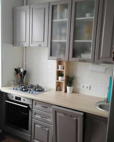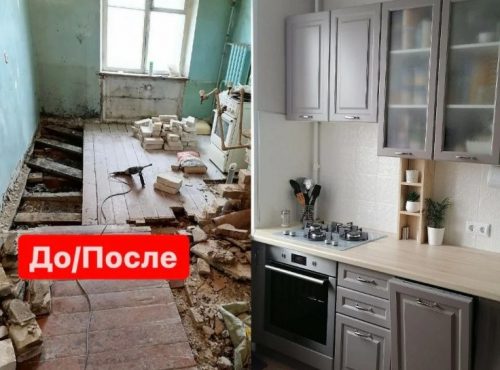 После ремонта кухню невозможно узнать. Она компактная, функциональная, с современным оснащением. Также, гармонично подобраны оттенки мебели и отделочных материалов. Кухня выглядит свежо и привлекательно.