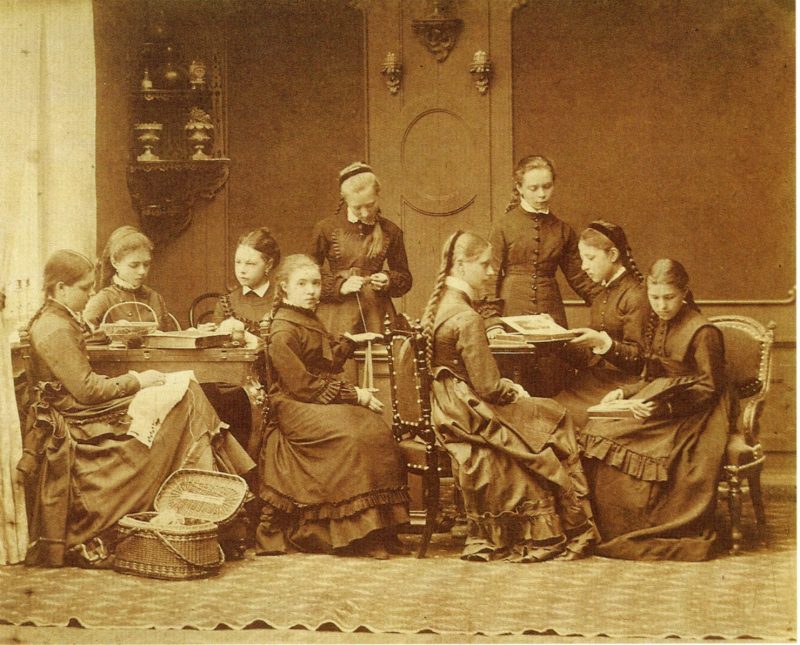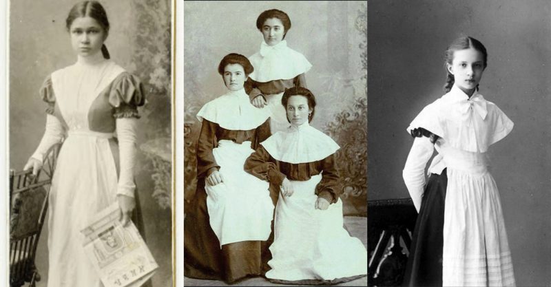 Первая школьная форма для девушек появилась в 1764 году в Смольном институте благородных девиц, основанном императрицей Екатериной II.
