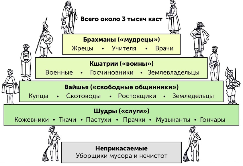 Высшие касты веками занимали престижные позиции в обществе, владели землей. Те, кто рождался в низших слоях, становились изгоями, их труд считался «грязным», а сами они — «нечистыми».