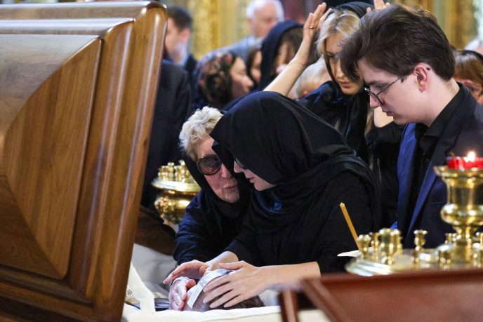 Знаменитая жена замминистра науки и высшего образования держалась стойко на прощании с любимым супругом. Облаченная в черное одеяние Диана долго стояла возле мужа, но не проронила ни слезинки. “Хорошая была пара”,