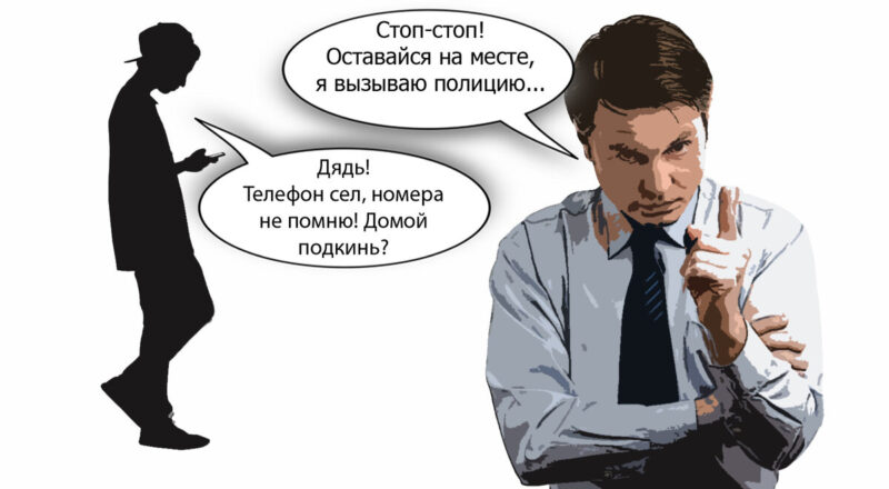 На парковке к нему подходит мальчик лет 10-11 и говорит, что был со старшим братом в ТЦ, поругался с ним и брат его бросил. Телефон сел, денег на проезд нет. Может ли Сергей его подвезти буквально несколько кварталов, адрес он точный знает, идти пешком боится. Номер мамы не помнит. Вообще телефонов не помнит.