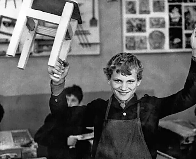 В расписании уроков с 1 по 8 класс были уроки труда. В младших классах на этих уроках дети, как правило, мастерили различные поделки из бумаги, картона, ткани. То есть, получали навыки работы с ножницами, клеем, иголкой и пр. Начиная с 4 класса, уроки труда у девочек и мальчиков проходили отдельно. Девочек учили домоводству – готовить еду, шить, чинить одежду. Мальчики осваивали навыки работы со плотницким инструментом. Ученики 7-8 класса вполне могли смастерить табуретку или полочку.