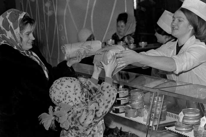 Банка сгущенки обходилась в 55 копеек, плитка шоколада «Аленка» — 80 копеек, килограмм сахара — 94 копейки, упаковка индийского чая «со слоном» — 95 копеек. Килограмм зефира — 2 рубля.