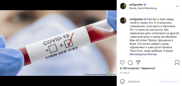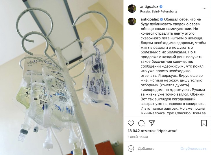 Как говорят некоторые средства массовой информации, у Александра был выявлен цитoкиновый шторм. Это очень тяжелое и опасное состояние. Иммунитет начинает pa6отать против собственных клеток, что может привести к самому непоправимому. Цитокиновый шторм – одно из серьёзнейших последствий вируса.