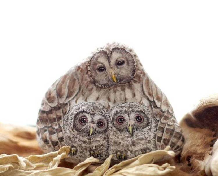 Японская художница Акие Наката превращает найденные камни в очаровательных животных, которых вы можете держать на ладони.