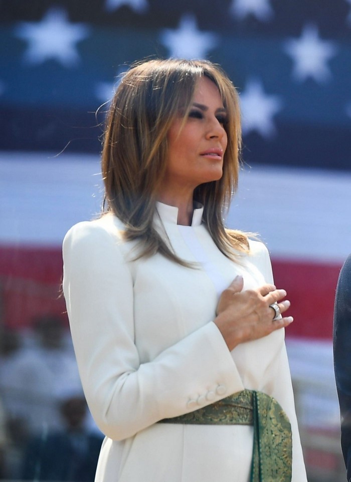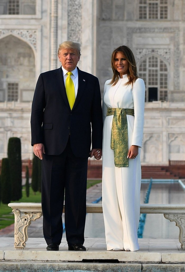 Недавно Дональд Трамп его супруга были в Индии с официальным визитом. Дональд не изменил своему стилю и вновь для встречи выбрал самый яркий галстук из своего гардероба — в этот раз желтый. А вот Мелания, как бы ее ни критиковали, в очередной раз сделала просто сногсшибательный выбор.