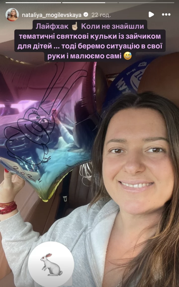 «Зайца сама рисовала. Не нашла шариков с пасхальными зайцами. Лайфхак: когда не нашли тематические праздничные шарики с зайчиком для детей, тогда берем ситуацию в свои руки и рисуем сами», — поделилась секретом певица.