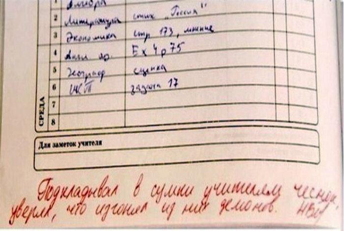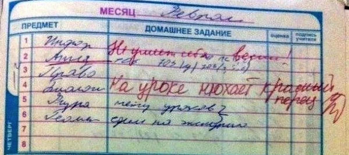Надеюсь эта подборка смогла вызвать у вас хотя бы улыбку. Какая заметка понравилась больше всего? Помните в своих дневниках записи от учителей?