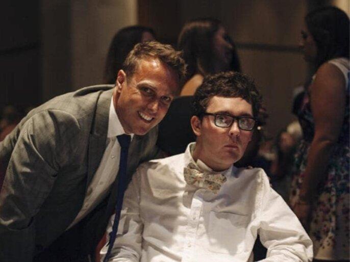 Бывший австралийский спринтер Мэтт Ширвингтон с Сэмом Баллардом на благотворительном вечере по сбору средств для лечения