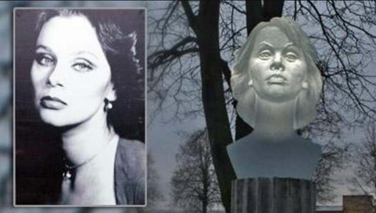 Напротив располагается колонна высотой примерно полтора метра, а на ней закреплено скульптурное изваяние – бюст актрисы из матового хрусталя. Очевидцы отмечают, что в лучах заходящего солнца хрустальная скульптура сияет, заливая все вокруг мягким и теплым светом.