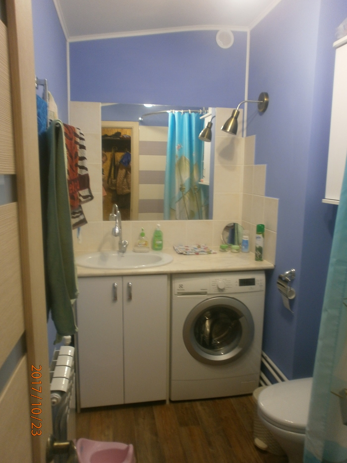 Вскоре провели воду, поставили котел, батареи. Потом и канализация появилась, доделали сан.узел. Двери, мебель, зеркала, шторки и прочие мелочи. Вот что вышло.