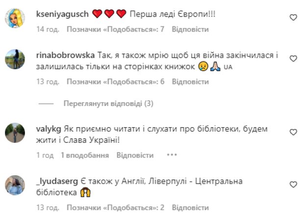 В социальной сети Instagram Зеленская также опубликовала снимки и подробнее рассказала о проекте. Первая леди сообщила, что в центральную библиотеку Франкфурта-на-Майне были переданы книги на украинском языке.