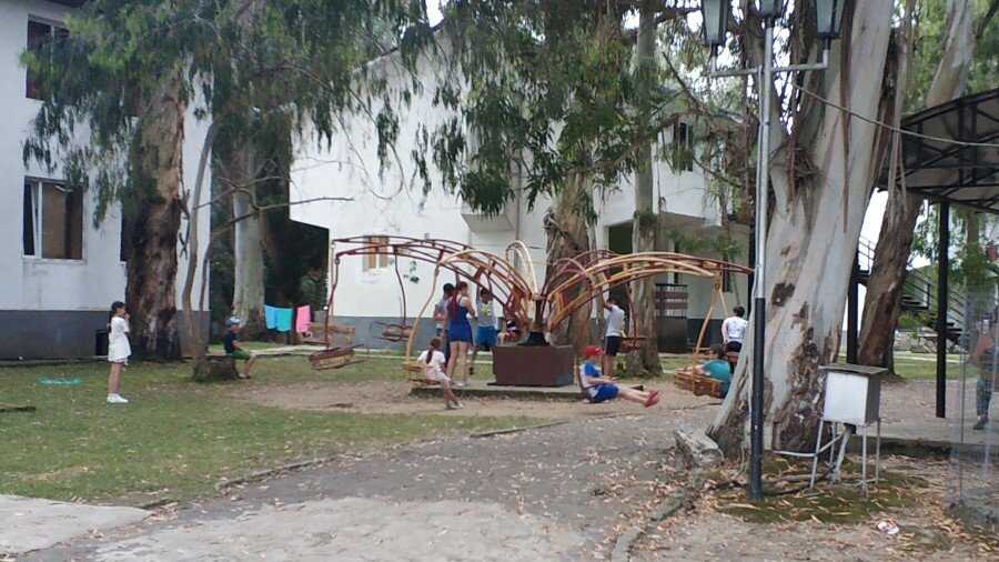 Еще одно советское наследие — карусель, которая когда-то работала, а сейчас приводится в движение мускульной силой родителей)