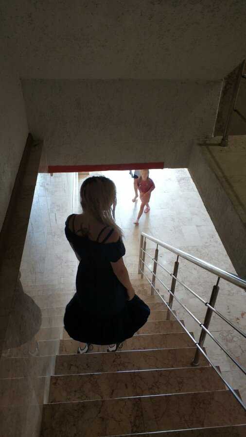 Мы жили в новом корпусе, его построили в стиле «как получится». С узкой и высокой лестницей, в которой ещё и голову каждый раз нужно было пригибать) Вот такая лестница, причем в 6 этажей. Лифта, естественно, нет)