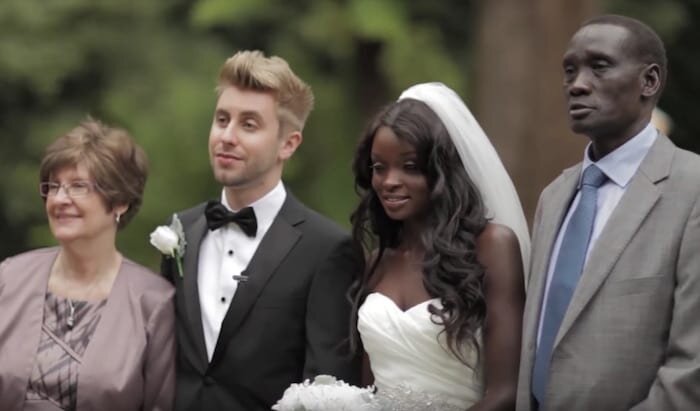Все буквально засматриваются на парочку. Еще бы! Она — потрясающей красоты темнокожая девушка, он — голубоглазый блондин. Все недоумевают, как такие разные люди нашли друг друга и полюбили!