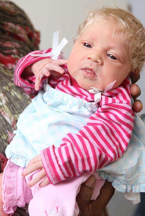 В клинике, где Нмачи появилась на свет, весь медицинский персонал был в восхищении от белокожей малышки. Её сразу окрестили «белым ангелом». Восторг был и от белых кудряшек. Обычно дети рождаются лысыми, а тут белокурые волосы.
