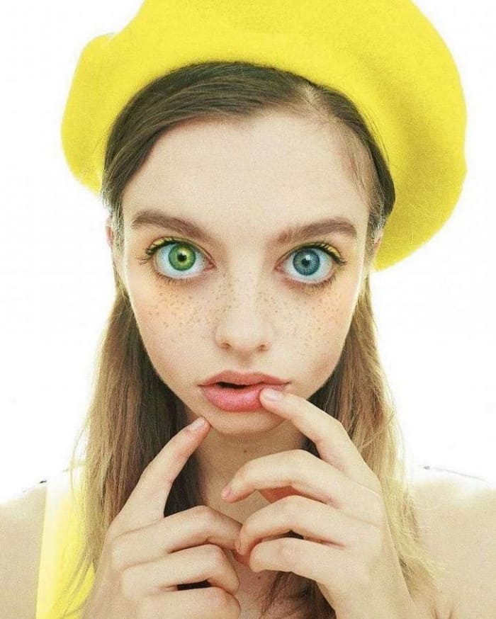 Сама девушка отрицает эти обвинения и говорит, что такие неземные глаза ей достались от отца.