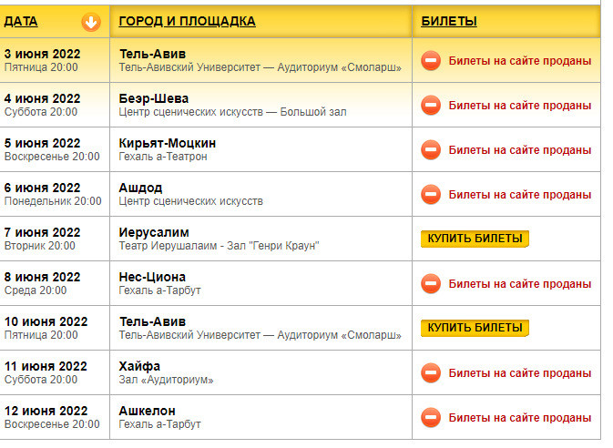 Практически два месяца Максим Галкин и Алла Пугачева с детьми живут в Израиле. У шоумена уже запланировано несколько концертов на июнь. Несмотря на то, что до них еще больше месяца, билетов почти не осталось.