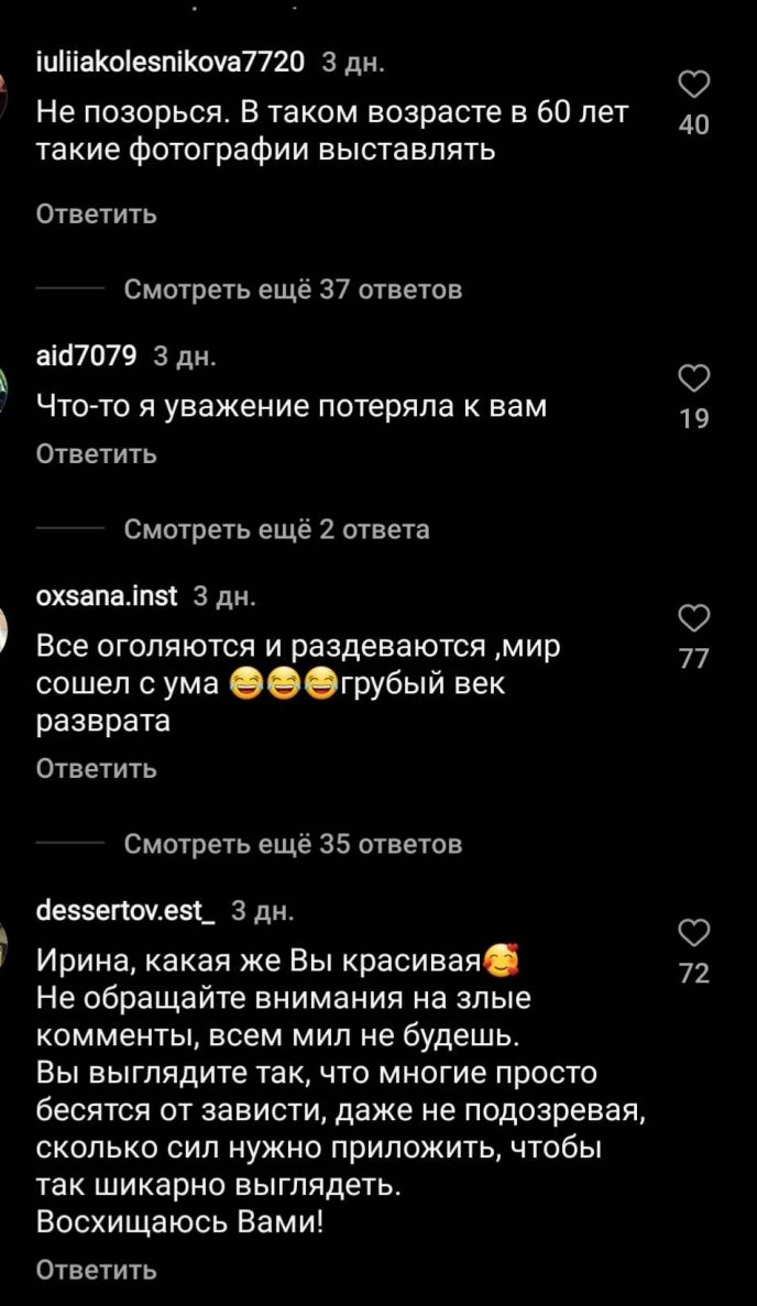Подписчики Ирины поделились на 2 лагеря: кому-то снимок актрисы показался неуместным, а кто-то искренне порадовался за нестареющую артистку.