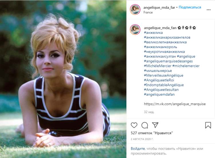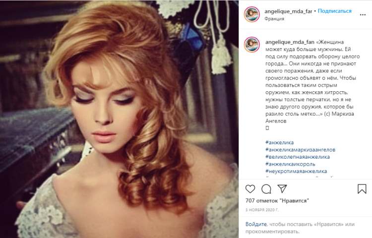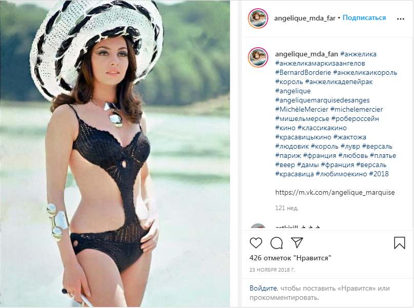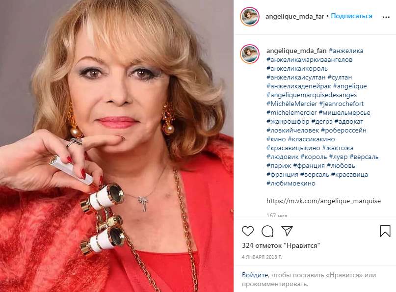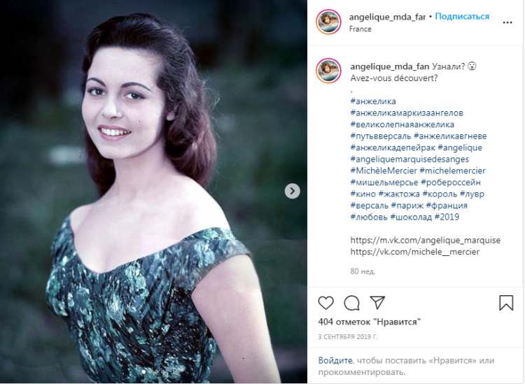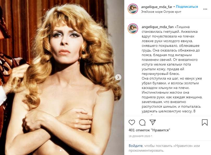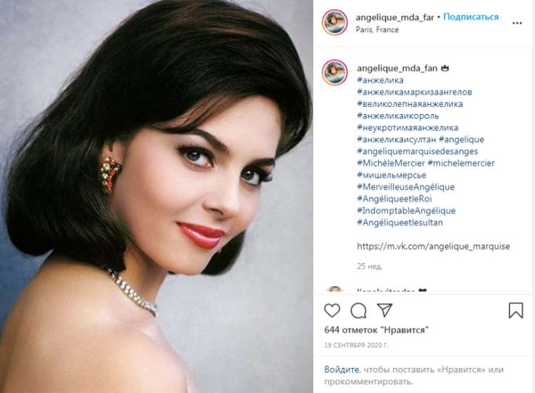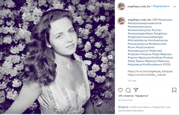 — Давний друг дал мне прочитать книгу Анн и Сержа Голон «Анжелика». Я залпом проглотила роман и влюбилась в героиню. Эта женщина была так похожа на меня. Серж Голон, а это был псевдоним Всеволода Голубинова, русского по происхождению, три года проработал в библиотеке Версаля, изучая исторические материалы XVII века. И после кропотливой работы вышла книга о приключениях Анжелики, снискавшая большую популярность во всех странах мира, а потом решили снять фильм. Супруги Голон сами меня выбрали, сказали, что я — настоящая Анжелика.