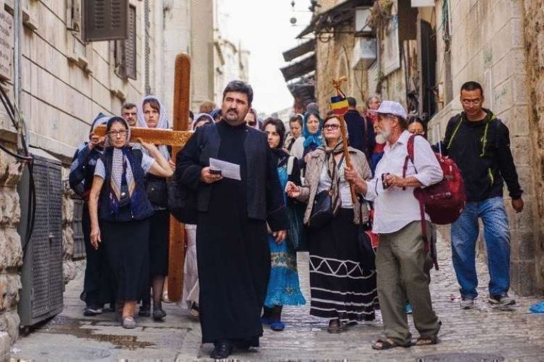 Via Dolorosa в Старом городе (русск. — «Путь Скорби») — путь, который, согласно библейской традиции, преодолел Иисус с деревянным крестом на плечах. Он начинается с места, где Иисус якобы был приговорен к казни, и заканчивается местом распятия, захоронения и воскрешения. Православные паломники проходят путь от начала до конца, а католики делят его на 14 «станций»: среди них место суда над Иисусом; место, где Мессия взваливает на плечи деревянный крест; место, где он встречается с Марией, и т.д. Заканчивается крестный ход в Храме Гроба Господня. Ежегодно в Великую субботу, накануне православной Пасхи, в Храме проходит знаменитая церемония схождения Благодатного огня.